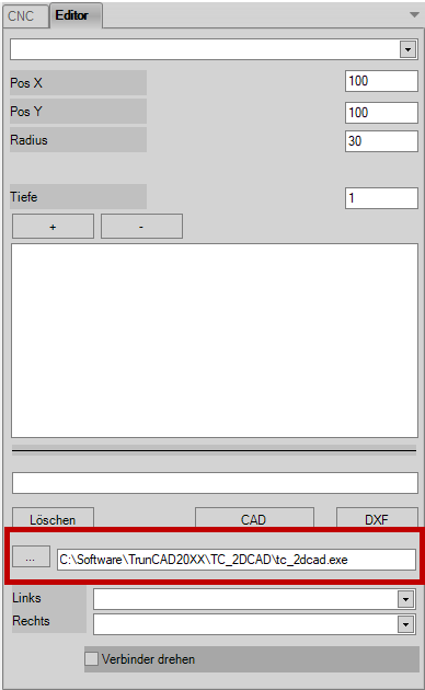 Das QCAD wird nicht mehr von uns mit ausgeliefert und ist somit auch nicht im Setup enthalten. In der Meldung beim Start von TrunCAD ist ein Link wo Sie die Version downloaden können. Nach der Installation von QCAD geben Sie den Pfad zum Programm ein. Dann